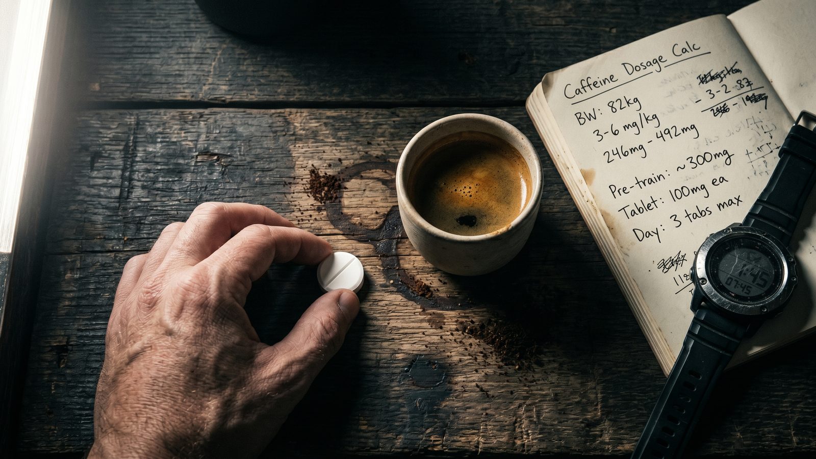 Die Empfehlung klingt ja zunächst simpel: 3 bis 6 Milligramm Koffein pro Kilogramm Körpergewicht, 45 bis 60 Minuten vor dem Training. Die International Society of Sports Nutrition (ISSN) stützt genau diesen Rahmen, und die Myprotein-Übersicht zu Koffein im Training dokumentiert, dass sich diese Empfehlung seit den ersten systematischen Koffein-Leistungsstudien der späten 1970er Jahre nicht wesentlich verändert hat. Was klingt wie ein simples Rezept, hat in der Praxis mehrere Haken: Wann genau ist der Unterschied zwischen 3 und 6 mg/kg entscheidend? Warum schlafen viele Trainierende schlechter, obwohl sie die empfohlene Dosis einhalten? Und welche Darreichungsform, also Kaffee, Tablette oder Pre-Workout-Booster, passt in welchem Kontext?
